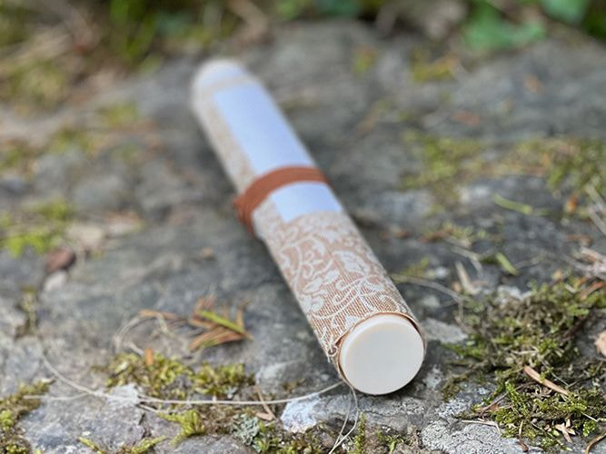 巻物が完成した状態でのサイズは、高さ200mm×直径25mm